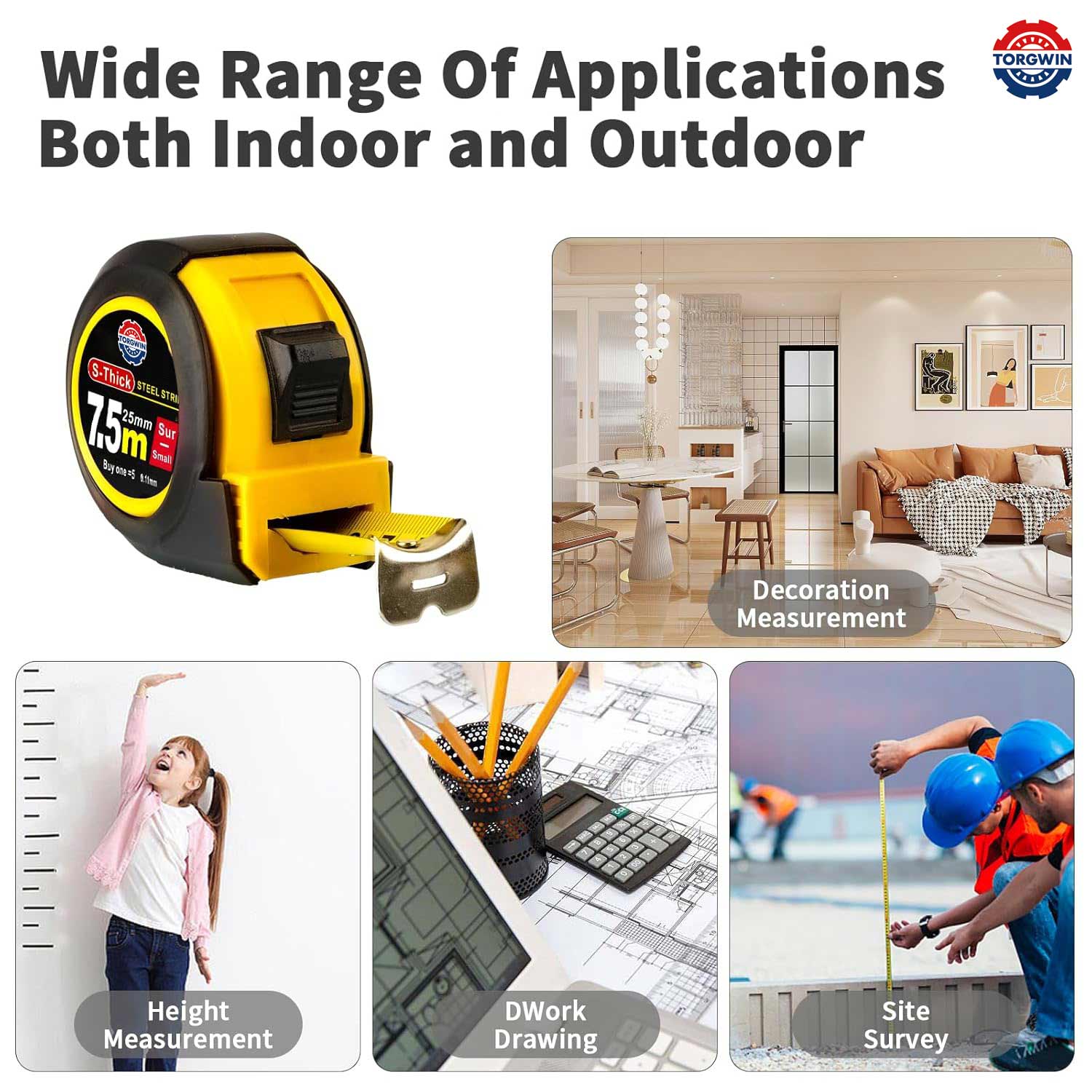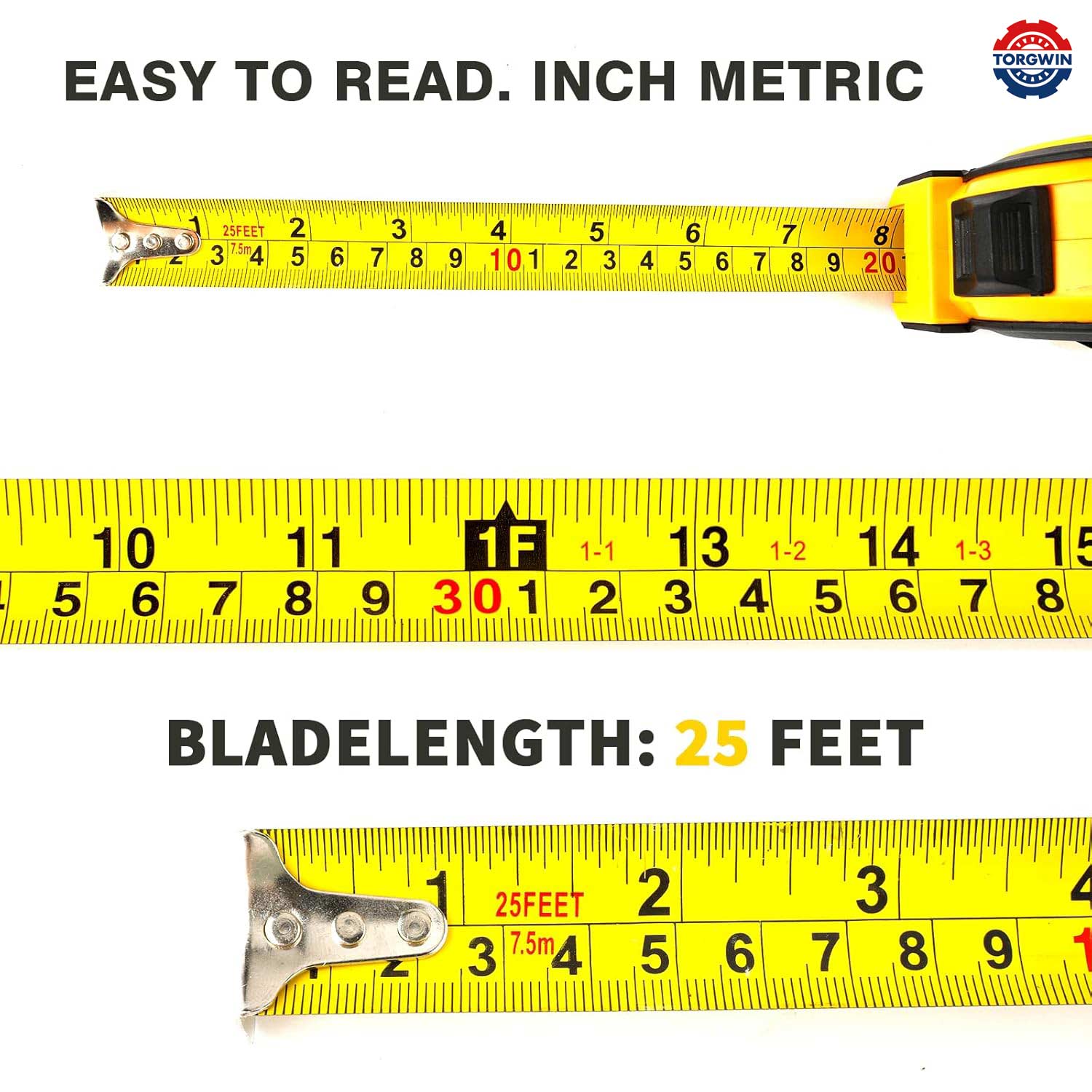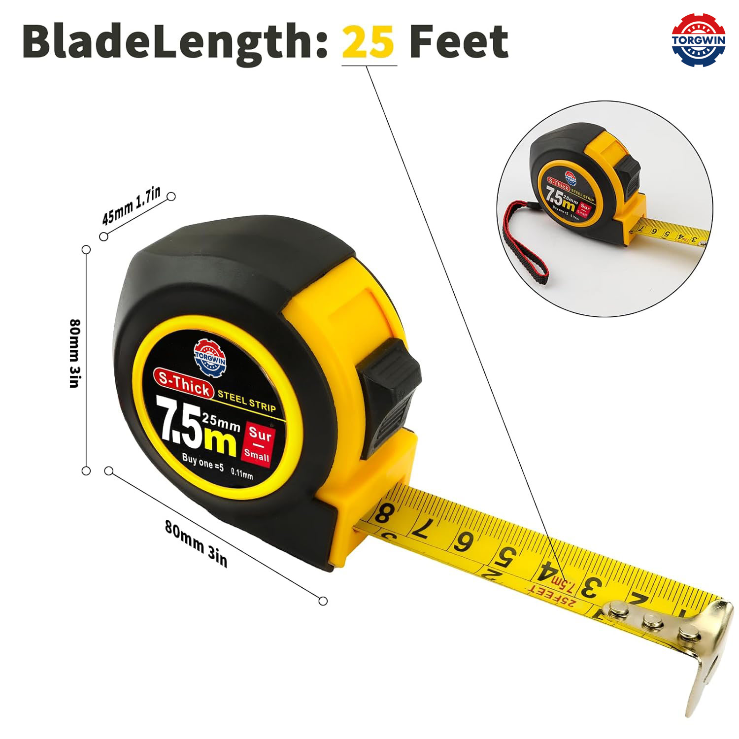 Banda de măsurare din oțel Torgwin, bandă măsurați 25 ft, bandă de măsurare retractabilă